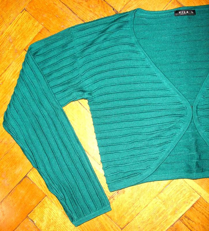 Шерстяной кардиган-болеро размер Л. Зелено-бирюзовый цвет. Очень эффектный и теплый. Замеры по запросу.