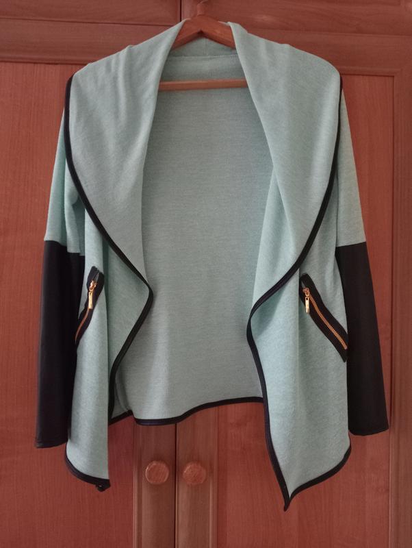 Оригинальный кардиган. Комбинация мятного и черного цветов. Красиво смотрится, приятный. Строй ценят за обратную связь!)Низкая цена связана с желанием разгрузить шкаф))))