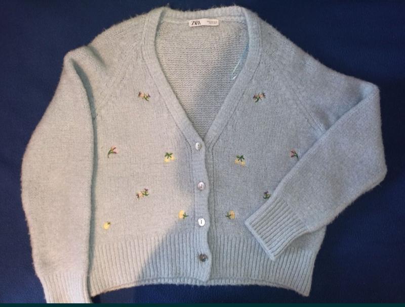 Кардиган от Zara на пуговицах с маленькими вышитыми цветочками, мягенький,тепленький