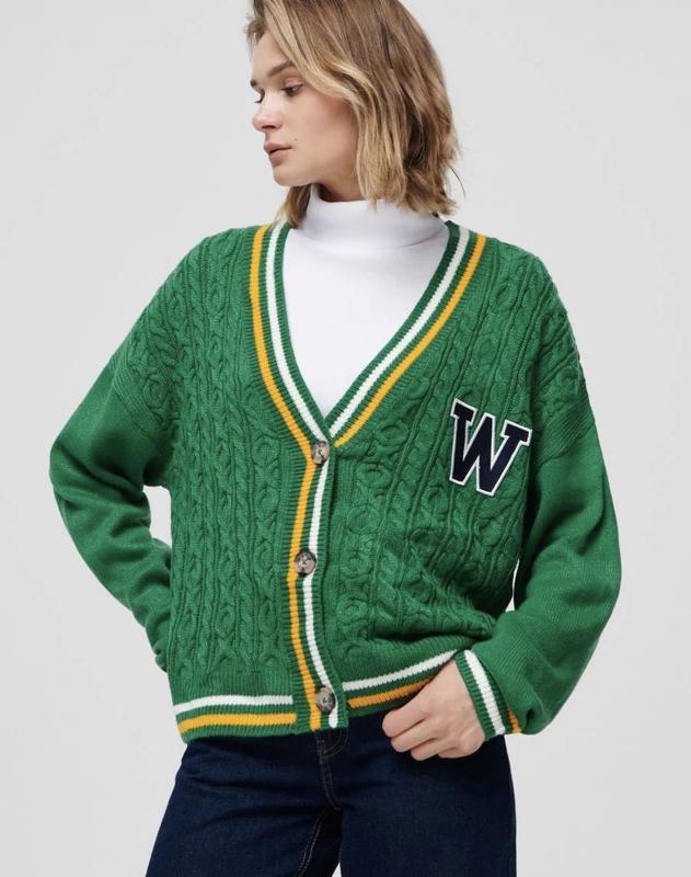 Зелений кардиган в бейсбольному стилі sinsay xs s m кофта на гудзиках светр хс с