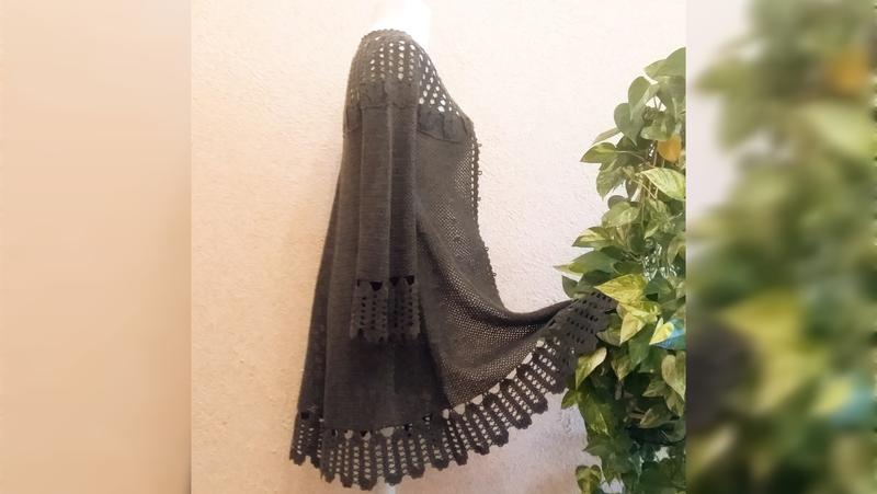 Вязаный летний серый кардиган "Элегантность" и три подарка покупателю: вязаное колье, сережки и шкатулочку для их хранения! Целый, стильный и нарядный набор под однотонное платье или кофточку с брюками! Прекрасное сочетание серого с белым, с черным или даже с бежевым, можно с голубым! В прохладную погоду такой летний кардиган будет незаменимым пошником и согреет вас на прогулках! Этот женственный и стильный темно – серый кардиган – летнее пальто "Элегантность", связанный крючком из тоненькой нежной полушерстяной пряжи в единственном экземпляре. Это особенно обрадует тех, кто любит уникальные и редкие вещи. Его классический стиль и цвет идеально подойдет под любую вашу летнюю одежду. подчеркнет вашу индивидуальность и придаст вашему образу обаяния и изюминки! За счет мягкой пряжи оно приятно к телу. Летнее пальто небольшого размера 42 – 44, рост 155 – 160. ОБГр – 78см Длина пальто – 90см Длина рукава по плечу от шеи – 63см Стирать руками при 30°. Сушить на полотенце. Гладить через влажное хлопковое полотенце по необходимости. Желаю вам прекрасного настроения и Много Любви и Счастья!