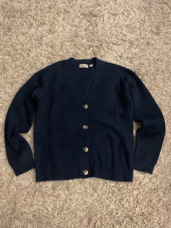 Жіночій кардиган. Blue Motion. Стан новий (без паперових бірок). Не носився. Колір темно синій. Розмір EUR 36-38, S-M. Заміри на фото. Легкий оверсайз. Склад поліестер, акрил, вовна, еластан. Мʼякий, приємний на дотик матеріал, не тонкий.