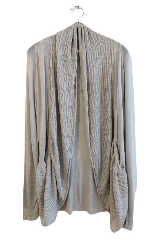 Кардиган от бельгийского бренда Myrine & Me. Ткань мягкая и приятная на ощупь, хорошо тянется. (6979) Размер: ХL (42/44 европейский) Полуобхват груди: 56 см Полуобхват талии: 51 см Полуобхват бедер: 55 см Ширина проймы: 26 см Длина рукава от горловины: 82 см Длина изделия по спинке: 73 см Состав: 100% район (шелковистая вискоза)