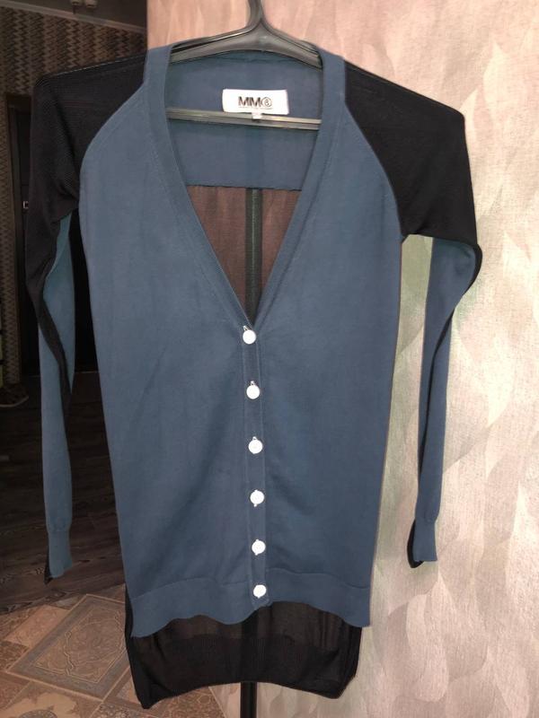 Maison Margiela Mm6 кофта нижние бирки срезаны, но это оригинал, размер S есть дефект по вороту , сзади на сетке затяжки снизу и пятнышки возле пуговки подмышки 42, рукав от ворота 64, от подмышки 50, длина перед 63, длина сзади 72 см