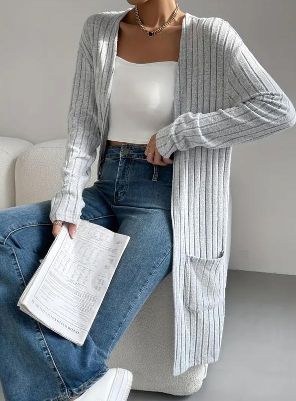 Женский кардиган с карманами, для весны и осени,размер L, но и идеально подойдет и на М. Длина - 94см, ПОГ - 53 см, ПОБ - 55см, длина рукава от горловины - 70см