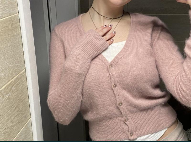размер s <unk> розовый кардиган h&m, мягенький. дополнит ваш весенний гардероб. Почти новый, в хорошем состоянии. V-образный вырез на пуговицах