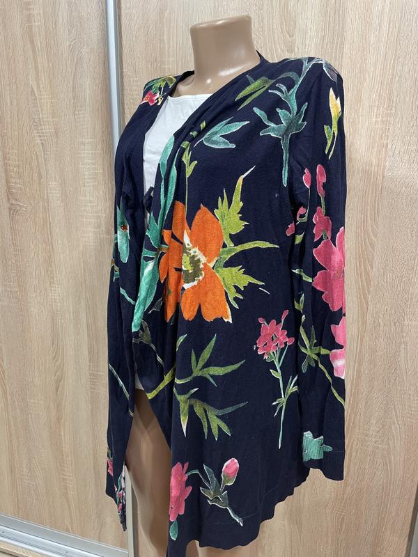 Дуже красивий кардиган в ідеальному стані,яскравий принт відомого бренду, який завжди має своїх прихильників🤝 мягенький приємний до тіла. Оригінально спадають боки кардигана, роблячи його асиметричним. Оздоблений камінцями. Розмір M, L.