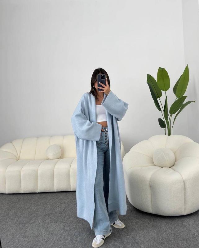 ‼️‼️Хіт продажів‼️‼️ Теплий кардиган з ангори ‼️Ціна - 740 грн (батал +50грн) 🔥Трендові Кольори🔥 - світло-молочний, беж, мокко, чорний, графіт, пудра, блакитний, фіолетовий, сірий, темно-синій, бордо, шоколад. ➡️Мод. 1203 ➡️Тканина: м’якенька Ангора Lux двостороння ➡️Розмір: 42-46 ➡️Довжина виробу 130см, ОГ до 120см ➡️Розмір: 48-52 (+50грн) Довжина 135см, ОГ до 135см