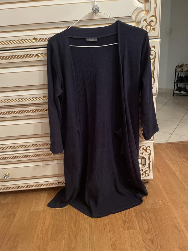 Красивый кардиган из «жатки», есть карманы, вырезы по бокам. Немного есть катышки, учитывала в цене Длина 98 см