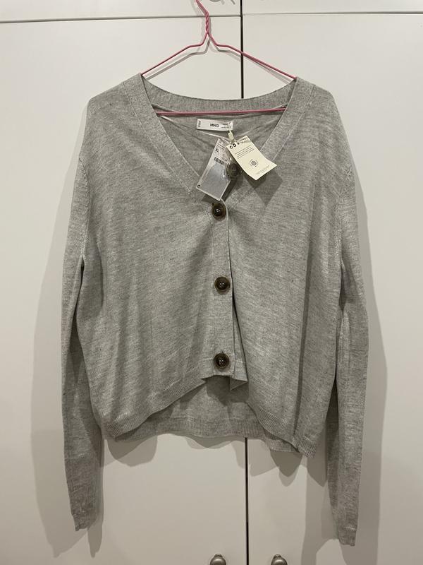 Кардиган новый, если брать не как оверсайз то по длине не слишком длинный. Тонкий, гладкий к телу полиэстр