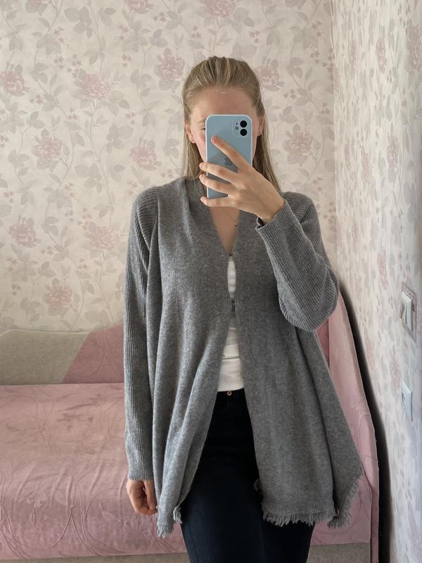 Очень теплый, мягенький кардиган с вырезами по бокам. 100 %кашемір На бирке указан размер xl, но я одевала на s, выглядит тоже красиво