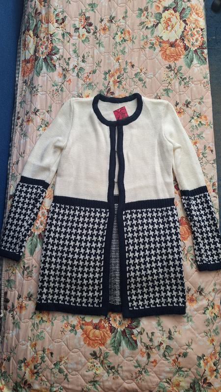 Новый теплый кардиган из пряжи 40% шерсть, 10% мохер, 50% акрил. Застегивается на крючки. Размер единственный подойдет на 42-46.