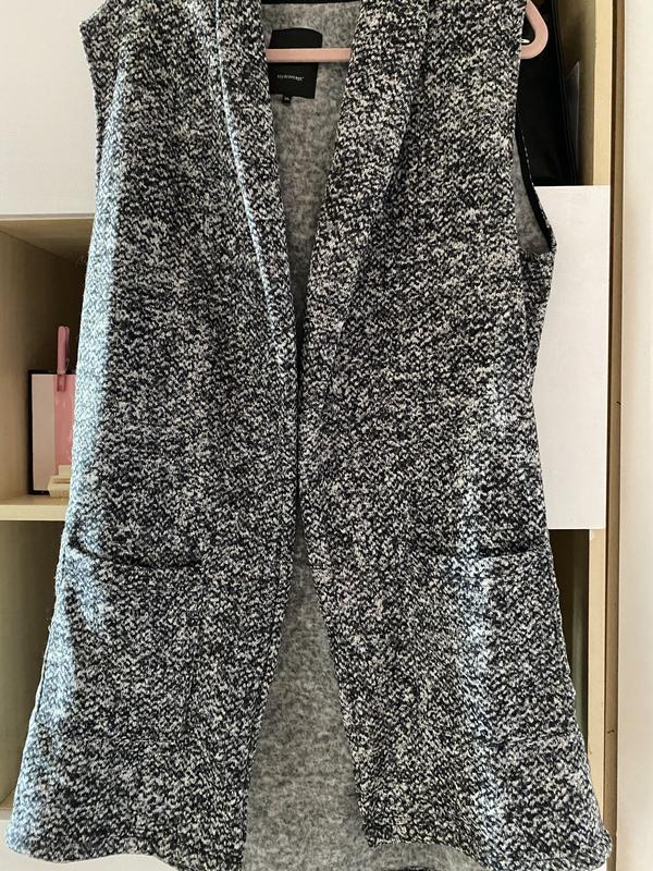 Кардиган без рукавов серого цвета. Подойдет на прохладную погоду, на флисе. Размер XL. Длина кардигана от плеча - 82 см. Ширина- 60 см. В идеальном состоянии