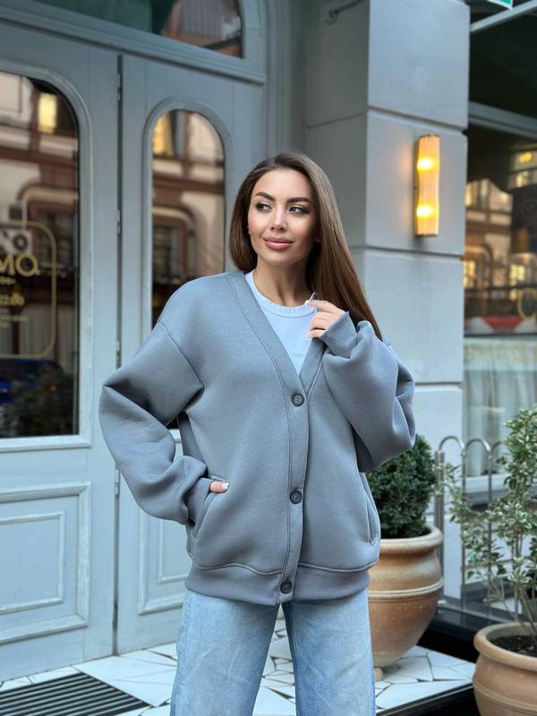 Новинка ✨✨✨ Фото Реал Кардиган ▪️Мод: 144 ▪️Ткань: турецкая троехнитка на флисе ПЕНЬЕ (мягкая, не кашлатится не теряет цвет) ▪️Размеры: 42-44,46-48. ▪️Цвета: серый,темно серый. Манжеты зерна.
