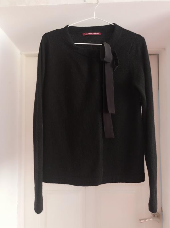 Оригинальный кашемировый кардиган с бантом французского бренда Comptoir des Cotonniers. застегивается на большую кнопку и бант из натурального шелка. Размер указанный xs, однако подойдет и на s. На шкафу аналогичная модель в сером цвете продается за 2250 грн. Замеры длина 56 см, пог 42 см, рукав 65 см.