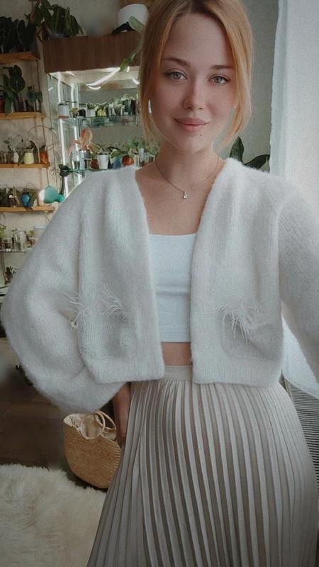Кардиган ручной работы Имеет кармашки с серебристой ниточкой и натуральным перцем длина 45см грудь (полуобхват) 50см совсем не колется, очень приятный к коже в наличии