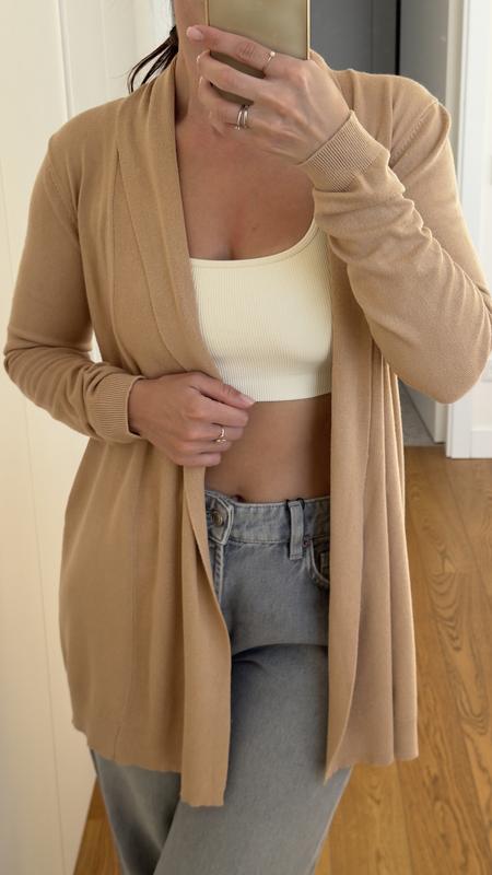 Бежевый кардиган Mango в размере S. В хорошем состоянии, но есть неброская пятнышка с внутренней стороны одного из бортов (показала на последнем фото).