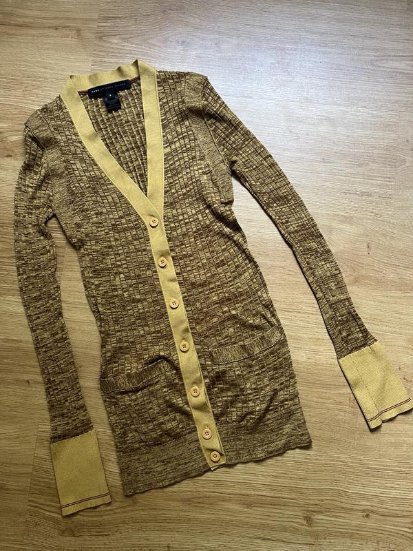 Меланжева кофточка кардиган від дизайнерського дому Marc Jacobs. Виконана із шовкового трикотажу. Оригінал. Усі бирочки на місці. Розмір S, можна й на XS сідає на фігурі. Склад на фото. Стан: Чудове