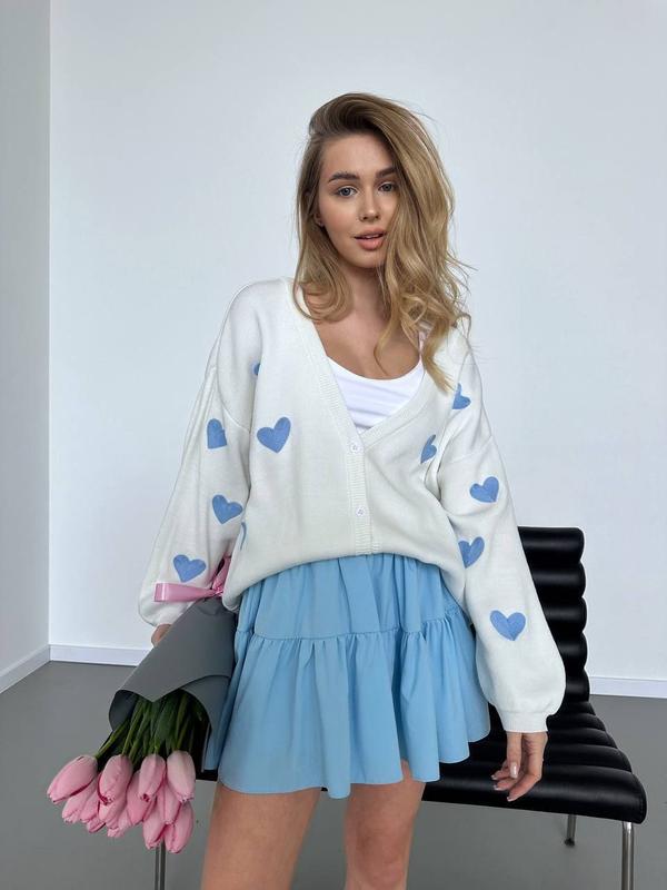 Кардиган Меліса 🖤 Розмір єдиний 42-48 Дрібна машинна вʼязка 80% акрил, 20% шерсть Серця вишиті❗️ Кольори: 🔹молоко з блакитними серцями 🔹молоко з рожевими серцями 🔹молочний меланж з капучиновими серцями Виробництво Туреччина 🇹🇷 Всі фото та відео РЕАЛ❗️ Ціна: 🔺1000 грн. Довжина по спинці 70 см Напівобхват по грудях 64 см Довжина рукава від плечового шву 40 см Довжина рукава від горловини 62 см