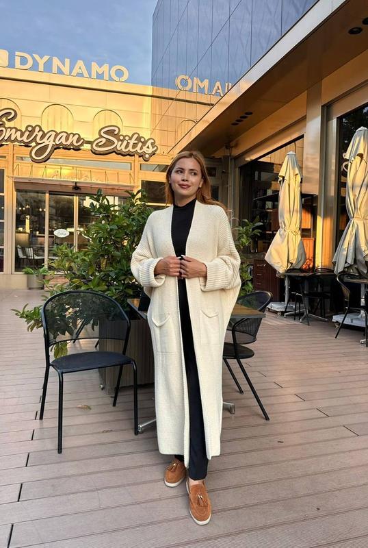 Вязаный кардиган, выполненный из мягкой пряжи. Кардиган идеально подойдет на прохладную погоду. • Размер универсальный • Длина 116 см • ОГ 120 см • Цвет: молочный, светлый беж, серый, темный беж, голубой, черный • Цена 1370 грн 2069кюс
