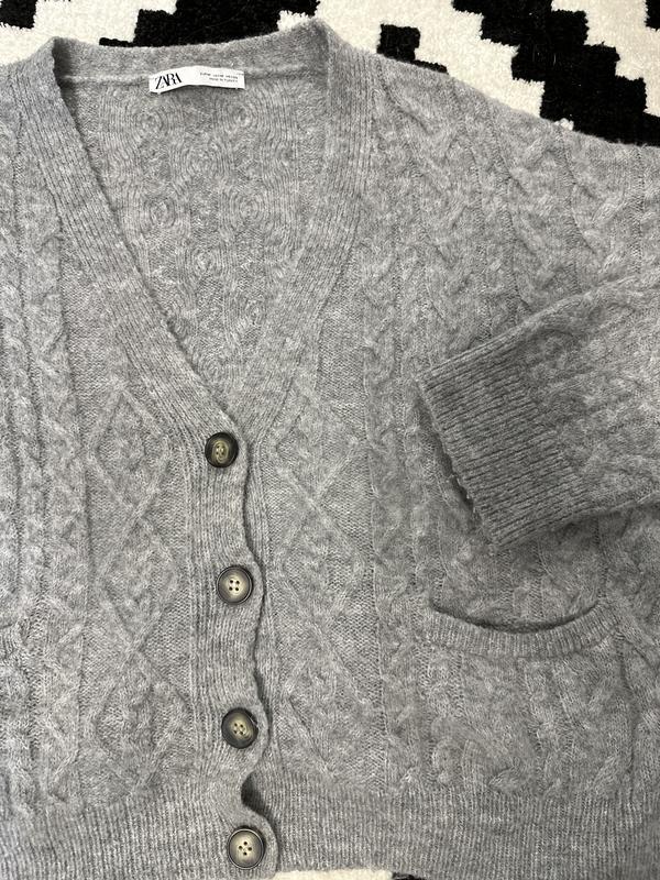 Мягенький теплый кардиганчик классического серого цвета - идеальный на осень Очень стильно смотрится Имеет кармашки Длина 50см Ширина 60 см