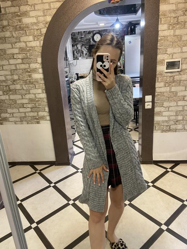 Кардиган машинна вʼязка. На останньому фото є фото невеликого дефекту, розійшлось по шву біля коміру. Мої параметри: зріст 167см; ог 84см; от 65см; ос 96см