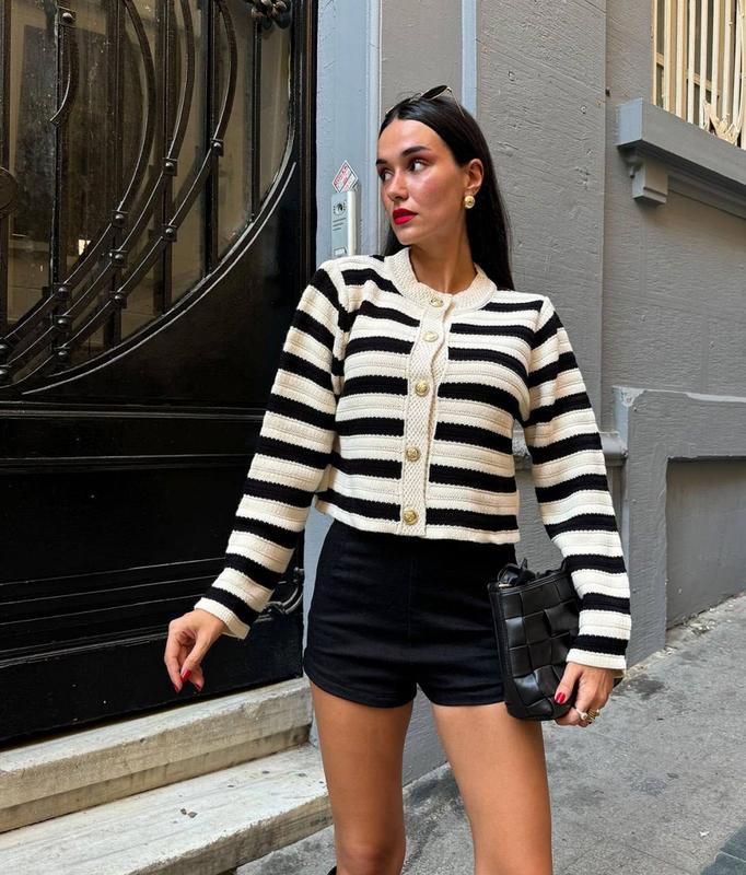 New 💔 Трендовые кардиганы на золотых пуговицах в стиле Massimo dutti 🔝 Размер универсал 2 цвета: черный и кремовый Высокое качество, Турция 🇹🇷 Ширина 50 см Длина 45 см