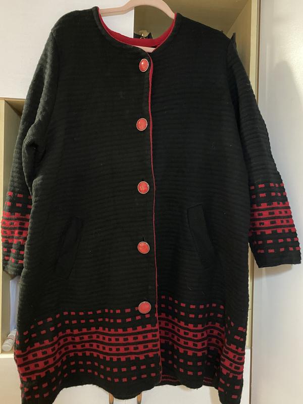 Черный кардиган/свитер на пуговицы. Длина от плеча до низа- 95см, ширина - 70 см, длина рукава- 60 см