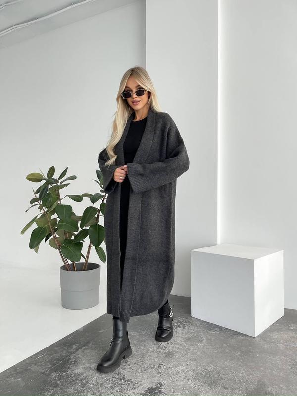 🩷 В наличии: серий, графит 🩷 Удлиненный кардиган, выполненный из мягкой пушистой пряжи. Кардиган идеально подойдет на прохладную погоду. • Размер универсальный • Длина 120 см • ПОГ 58 см • Рукав от шей 75 см • Склад: 70% акрил, 10% шерсть, 12% полиэстер, 8% PBT • Цена 1785 грн pur