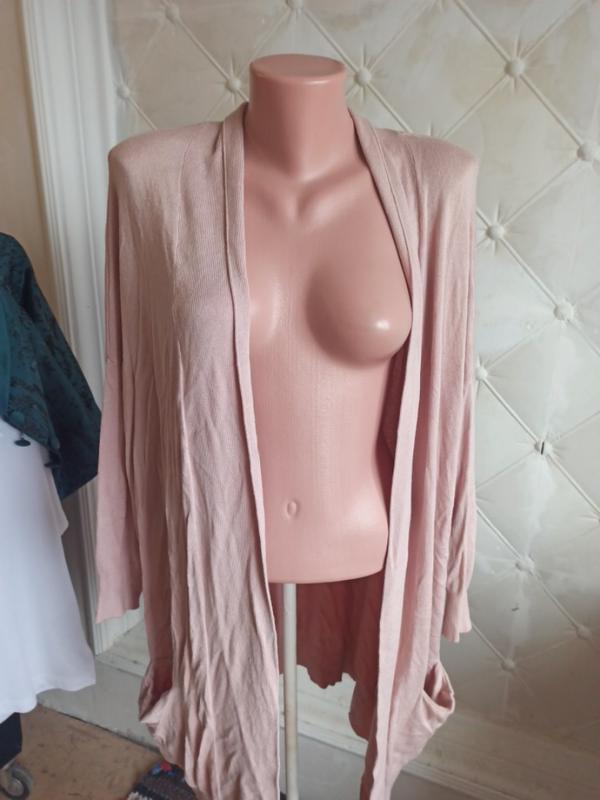 Ніжний пудровий колір, укорочений рукав, без застібок, кармани робочі, стан нового, без зірок, пог 62 см., поб 62 см., довжина виробу 84 см