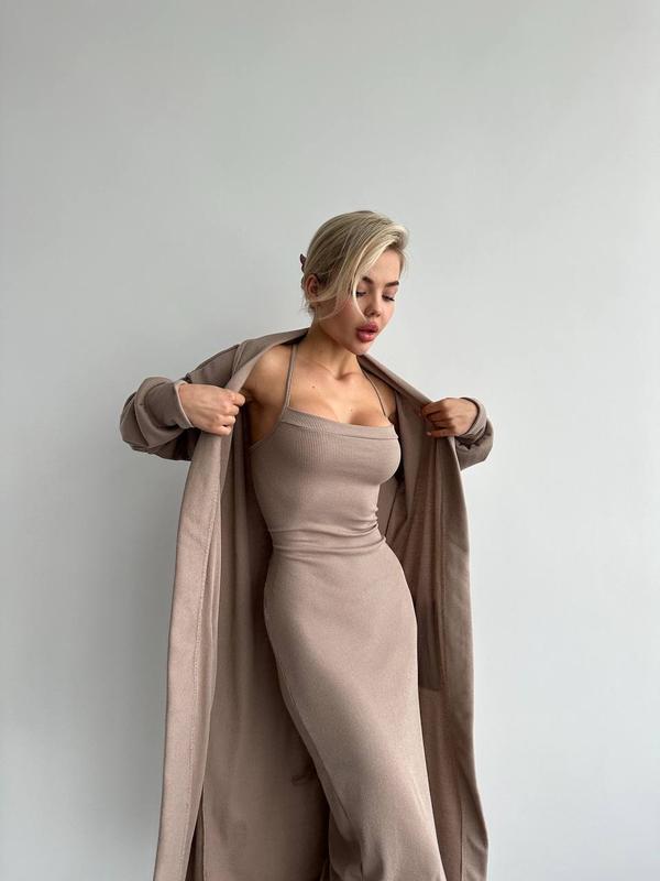 Комплект ❤️ (Кардиган + сукня) ❤️ Мод: 106-109 ▪️Размер: 42-46 ▪️Ткань: плотный рубчик Турция 🇹🇷 ▪️Цвет: черный, молоко, мокко, графит