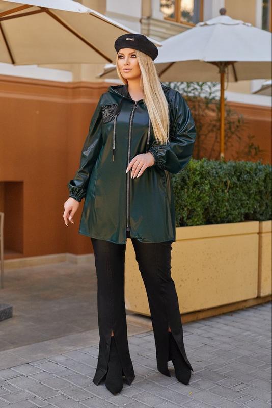 ⬆️Кардиган " ІНЬ-ЯНЬ" # 965 ❤️96 Размеры: 48-50, 52-54 , 56-58. Размеры идут спаренные. Тканина: Эко кожа + декорировано стразами высокого качества DMS. Фактические измерения: По 52-54 размеру. Длина от плеча: спереди - 90 см. Ззаду - 86 см. Рукава - 65 см. ОГ - 120 см. ОТ - 110 / 120 см. ОБ - 130 см. К каждому следующему размеру добавлять + 4см (на одиночные размеры). На спарении +8см, помимо длины изделия. Рост модели на фото- 170см. На модели одет: 52-54 размер. Параметры модели на момент съемки: БЛОНДИНКА: ОГ: 115 см. ОТ: 90 см. ОБ: 120 см. БРЮНЕТКА: Рост 172 см. ОГ: 96 см. ОТ: 88 см. ОБ: 117 см. Дополнительные характеристики: Кардиган: Эко кожа хорошего качества, по спинке и переду пришита аппликация из ткани которая оформлено стразами высокого качества DMS, хорошо держатся - прошли термо отделку на специальном оборудовании. На пояснице идет резинка для фиксирующие талии. Рукава на резинке. С капюшоном. С карманами. Сезон осень-весна.. Цвета изделия: Черный. Коричневый. Серый. Бутилочный.