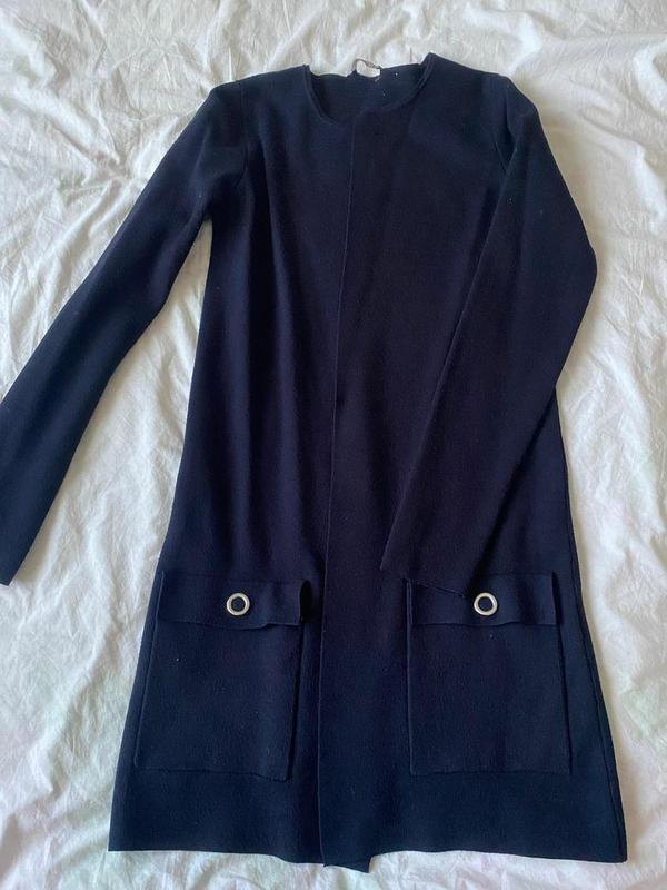 кардиган женский orsay в размере S, ткань теплая, стрейчевая, плотная и приятная на ощупь.стан очень хорош длина 84 под руками 42 плечи 35 рукав от плеча 64.5 рукав от горловины 71.5