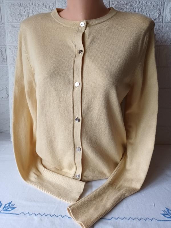 Кофта в дуже гарному стані. Без дефектів. Склад 70% віскоза. Колір жовтіший, але не яскравий, ніж на фото. Тканина м'яка, приємна до тіла, добре тягнеться. Орієнтуйтеся на заміри. Заміри - плече 11,5 - довжина рукава 51 см + 14 манжет - довжина по спинці 54 см - довжина бічного шва 38 см - ширина плечей по спинці 40 - напівобхват по грудях 47. Відсилання новою поштою та кріплень. Накладеної платежі немає.