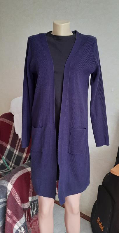 # 47 Теплый женский кардиган фиолетового цвета. Стан хороший. Бирка со составом срезанная. Размер S/M Ширина плечей 36 см Полуобхват груди 48 см Длина рукава 63 см Длина 95 см.