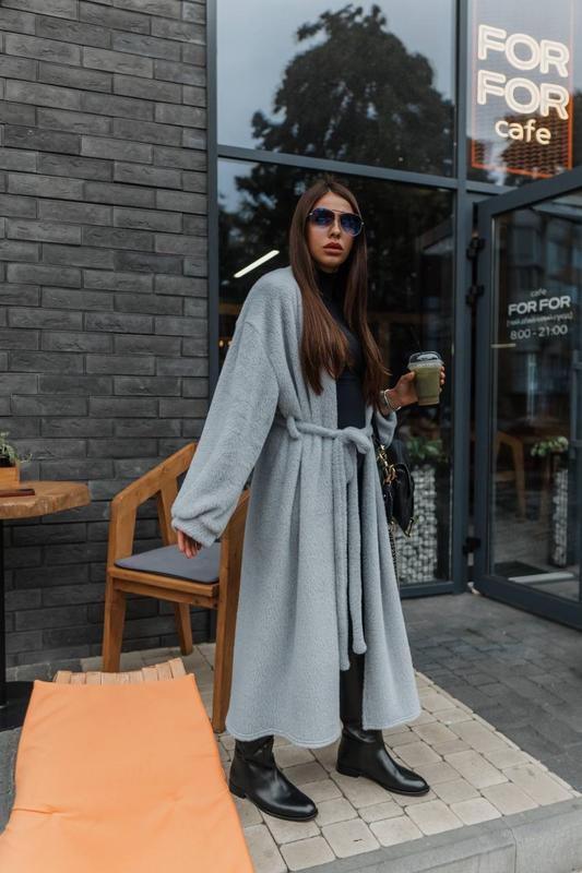 Трендовый кардиган Норка Беж - арт 5858.144 Серый - арт 5858,88 🛍Цена 2000 грн Материал: вязаная ткань с ворсом, похожая на норку. Теплая, мягкая, очень красивая. Прилагается пояс. Длина изделия 120 см. Замеры по изделию: 💥1 р (42-54): ОГ и ОС 85-125 💥2 р (56-70): ОГ и ОС 126- 150