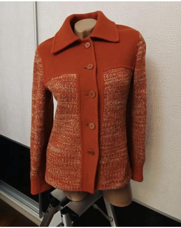 Французский шерстяной пиджачок Michel Firer. р. 44-46 Длина по спинке 61-62cm Плечи 39см Рукав 58см Ширина между подмышками 48см Пот 45см На последнем фото маленький нюанс у пуговицы.