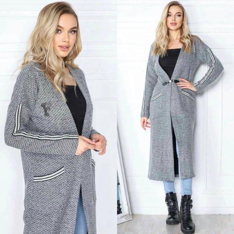 Кардиган теплий Розмір:42-44,46-48,50-52 Тканина: в'язка на трикотажній основі (щільна, тепла) Колір:графіт,сірий Заміри: Розмір 42-44 ог-102,от-100,ос-102,довжина-120,довж.рукава-44 Розмір 46-48 ог-108,от-106,ос-108,довжина-120,довж.рукава-44 Розмір 50-52 ог-124,от-122,ос-124,довжина-120,довж.рукава-45 дгн