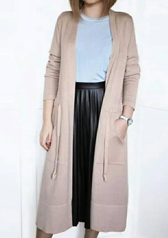Кардиган бежевый, универсальный размер, но лучше на S/M, длинна 92см, рукав 56см, ширина 47см, ширина по низу 57см,тможно затянуть по талии, новое состояние, размер не подошёл