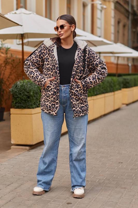 ⬆️NEW Кофта на меху! Лео Мод.2125❤️113 Ткань: флис 🇹🇷 и мех! Цвета: серый лео и коричневый. Размеры и замеры: 48-50: ог 120 см. 52-54: ог 128 см. 56-58: ог 134 см. Длина 70-75 см.