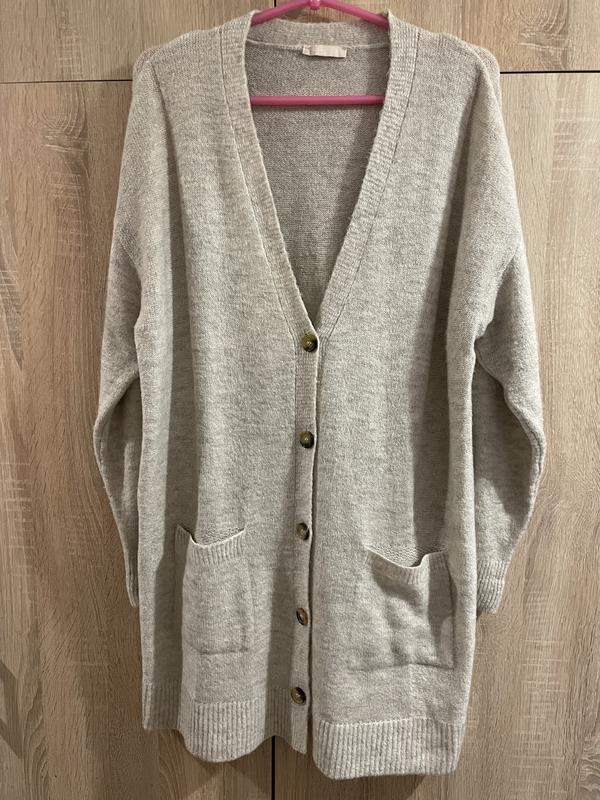 Мякенький кардиган великого розміру, можна як оверсайз Заміри: ОГ - 120, рукав - 67 (спущене плече), довжина - 85. Дефектів немає