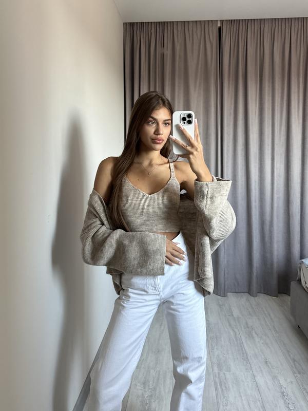 В'язаний кардиган з топом ROMASHKA Дуже затишний варіант у стилі casual для повсякденного носіння. Можна поєднувати з різним низом. Доповнюючи образ аксесуарами, вийде повноцінна модна цибуля. Комплект складається з вʼязаного кардигану та топу, що дуже зручно та стильно виглядає. Напівобхват грудей: Кардиган: 55-60 см Топ: 35-45 см Напівобхват талії: Кардиган: 50 см Топ: 30 см Найкраща температура для прання - 30 градусів.