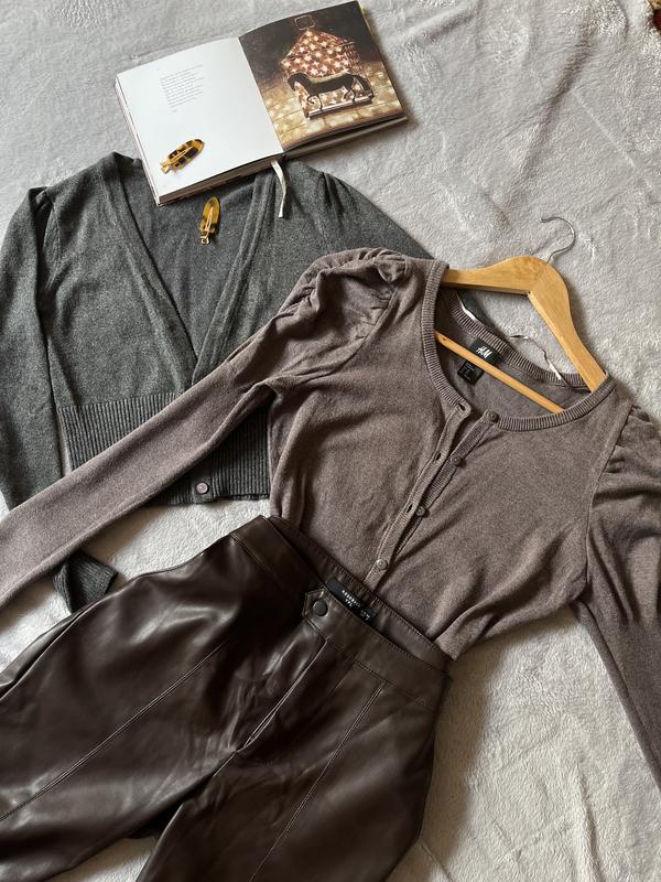 Замечательный Кардиган, приятный к телу, нежный цвет, идеально подойдет к брюкам с высокой посадкой, длина 53 см, пог 41 см, рукав 64 см.