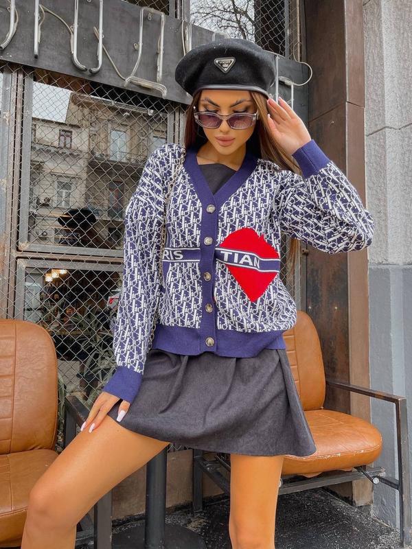 🤍 Теплые кардиганы с фирмовым принтом DI0R и сердечком на пуговицах 🤩 Высокое качество🔥 Мелкая машинная вязка, акрил Размер единый 42-46, длина 62см 🦉 8168 цена 870 грн.✅