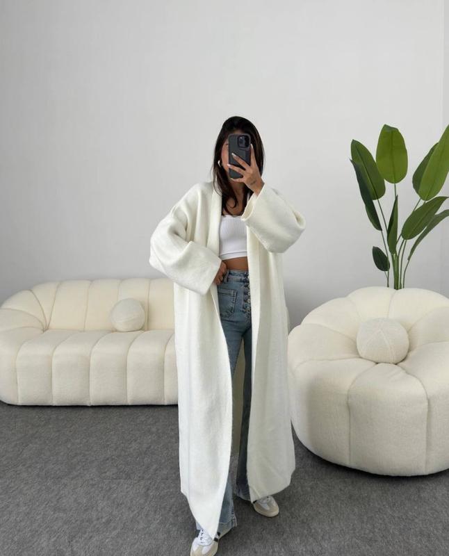 Трендовый кардиган! Размер: 42-48 Ткань: мягкая Ангора Lux двусторонняя Цвет: светло-молочный, мокко, черный, серый, малина, голубой Замеры: Длина изделия 130см, ОГ до 120см