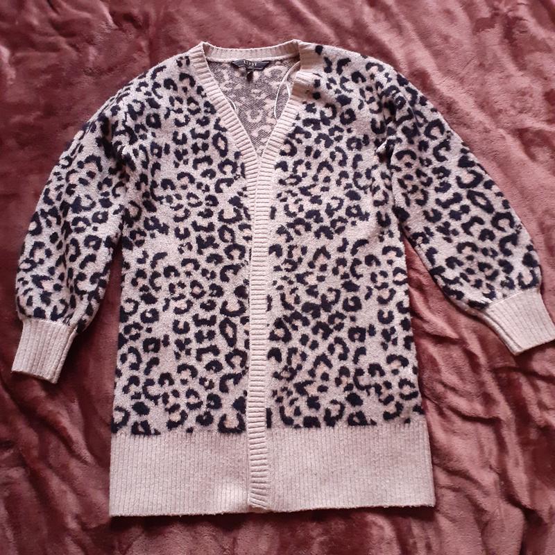 Тепленький удлиненный кардиган в леопардовый принт длина 74см пог 45см рукав от плеча 51см