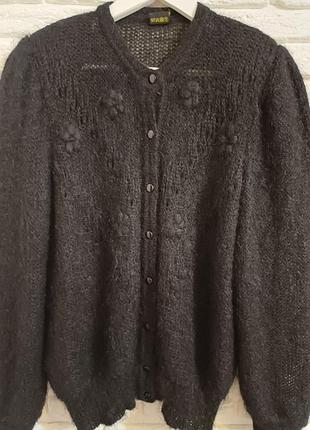 Итальянская кофточка с ажуром на пуговицах не щильна.Рукав с подплечниками. Размер подойдет на,М,Л.Плечи 41см.пог 57см.по низу манжет 37см.длина рукава от плеча 68см.длина изделия 64см.