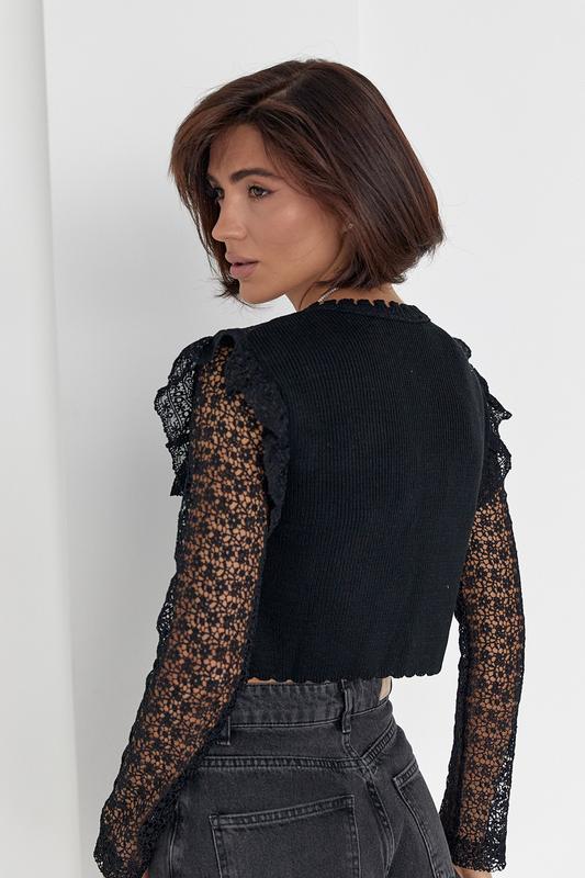 Кардиган на завязках с кружевом