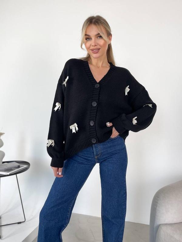 Женский кардиган украшен бантиками за две секунды добавит трендовых акцентов твоим нарядом. Это идеальная гармония базы и модных тенденций! Производитель: Турция Размер: 42-46 Тканина: 70% акрил, 30% вовна Арт:1917 Цена 880 грн✅
