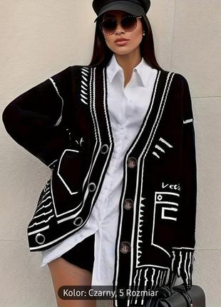Очень мягкая и теплая кофточка/кардиган с неординарным принтом. Размер - S, но прямой, свободный крой, как оверсайз. Замеры – смотрите на фото. Новая (не б/в) стильная вещь!